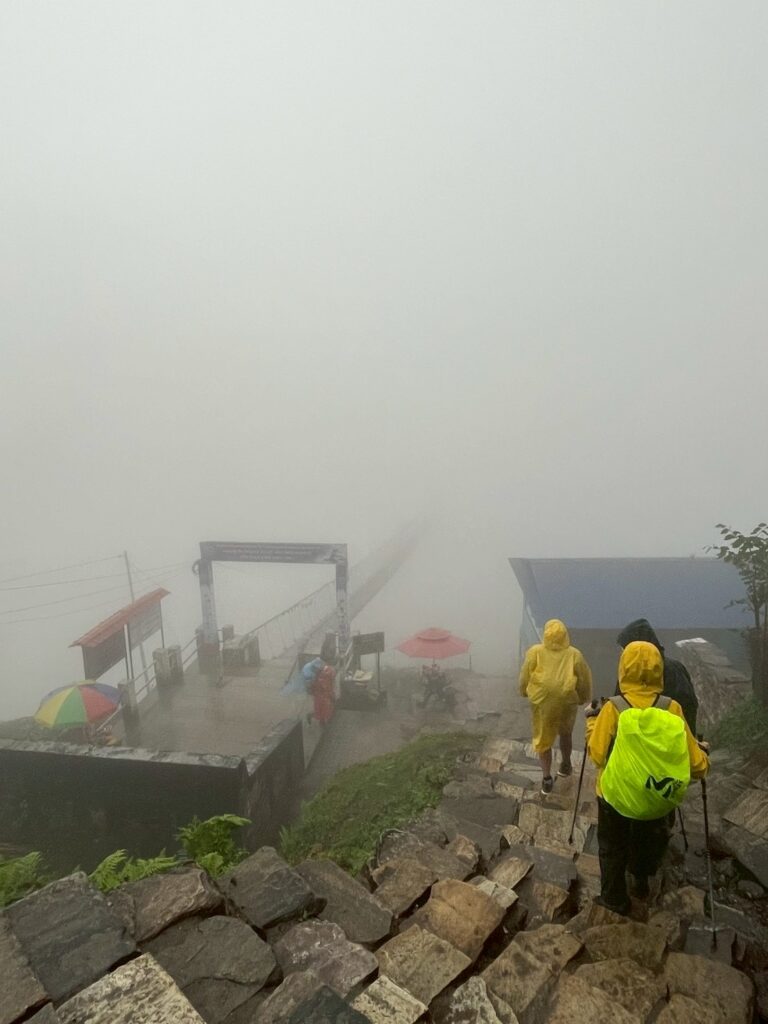 まずは長い吊り橋を渡るが、あたりは真っ白で何も見えず、怖さはあまり感じなかった。