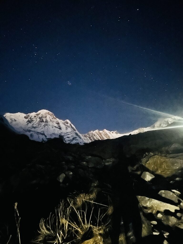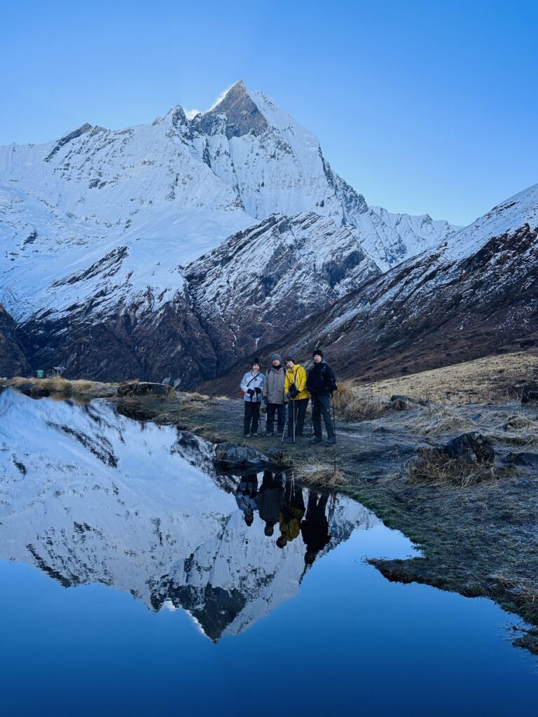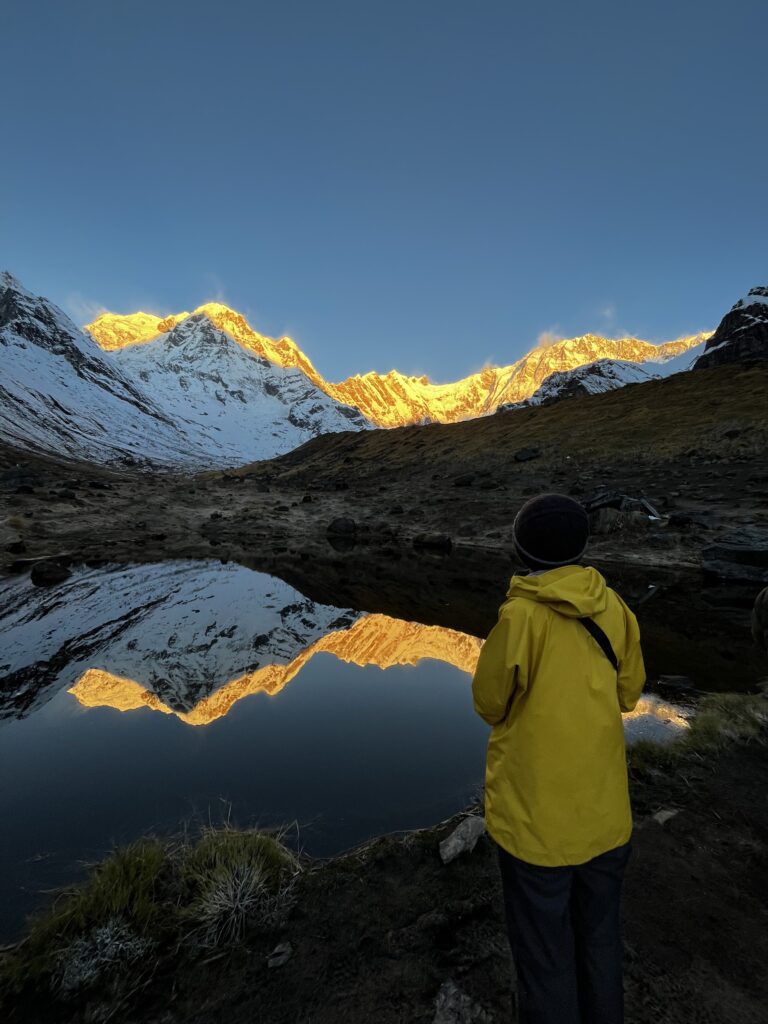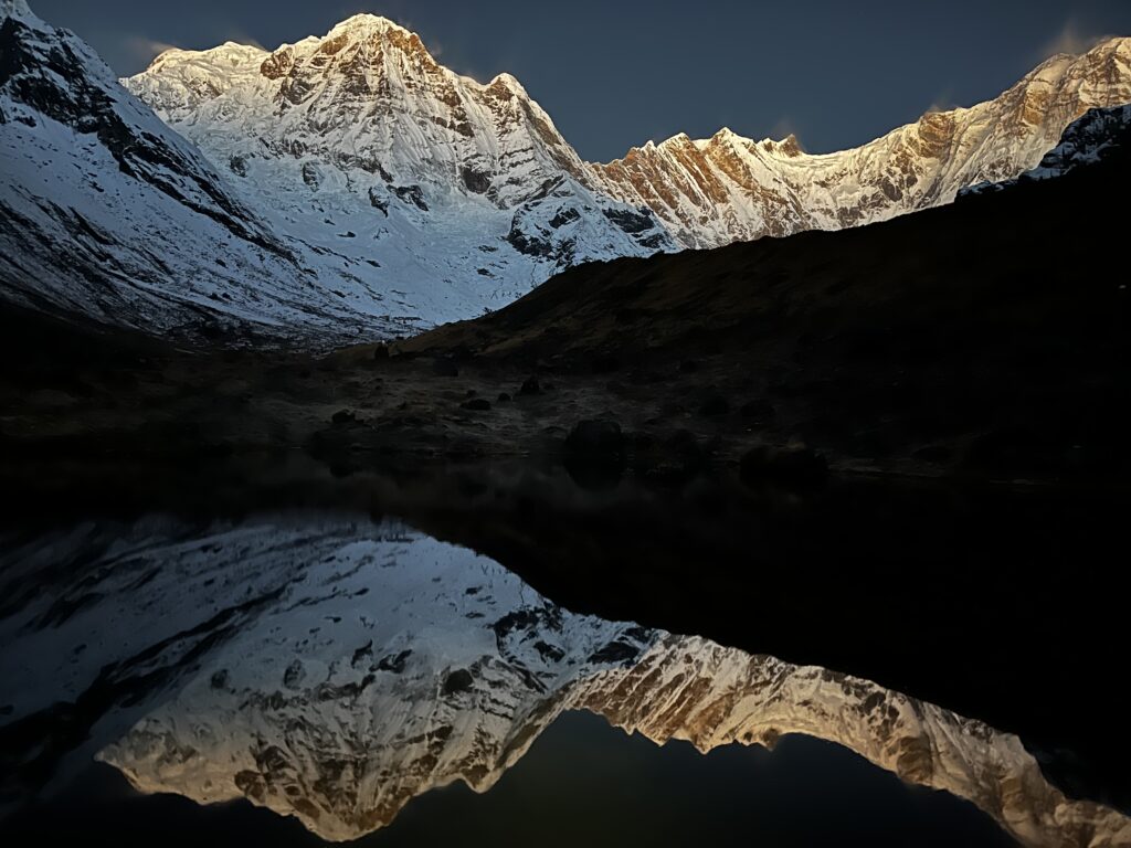暗闇の中を歩いて迎えた夜明け、湖に映る逆さアンナプルナ、そして4130mのABC到達。この日の景色は、一生忘れられないものになりました。