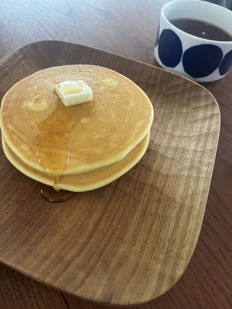 - フライパンを中火で熱し、生地を流し入れて両面を焼く。
