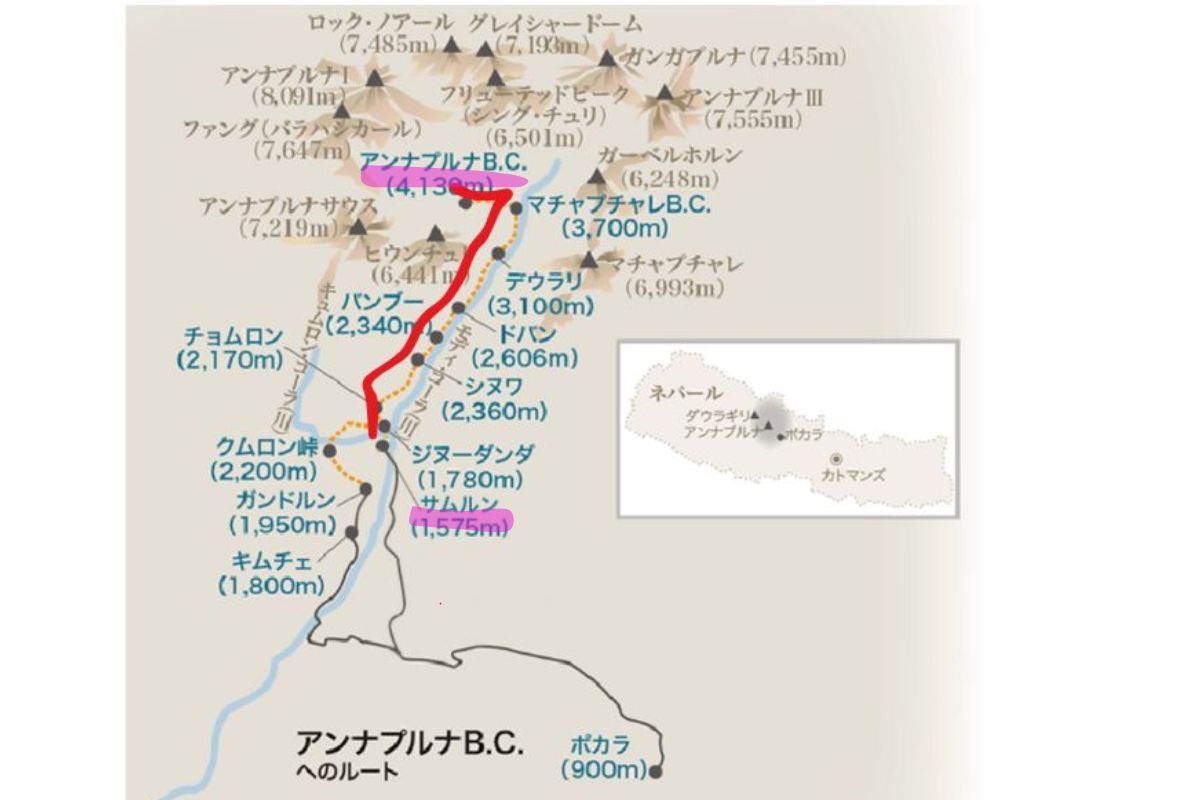 サムルン〜アンナプルナB.C.までのルート(5日間)です。